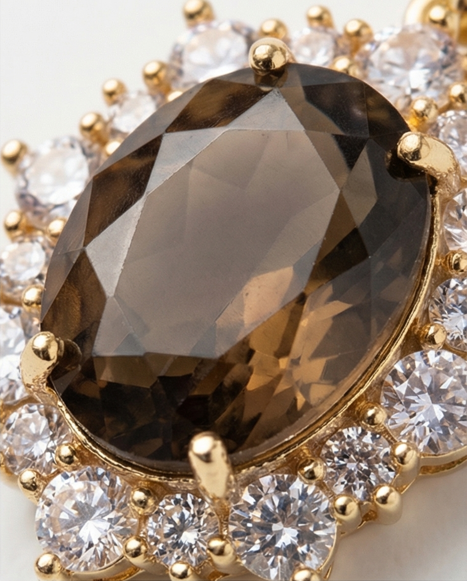 Introducing the Heather Earrings from our exclusive La Promessa Bridal Collection. These stunning earrings feature radiant coffee-colored zirconia stones set on a rounded crystal-encrusted 18k gold-coated clasp, creating an elegant and luxurious look.